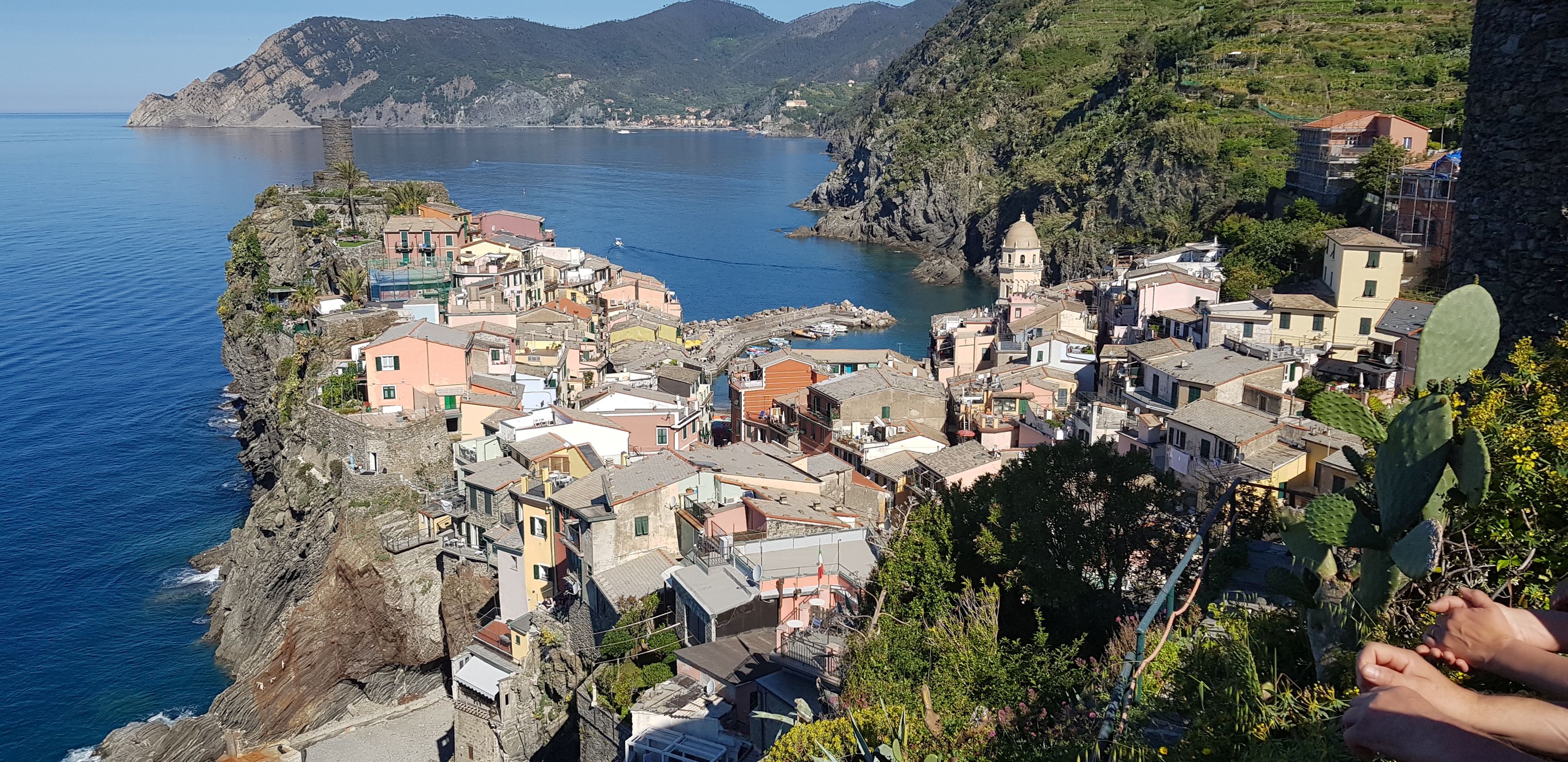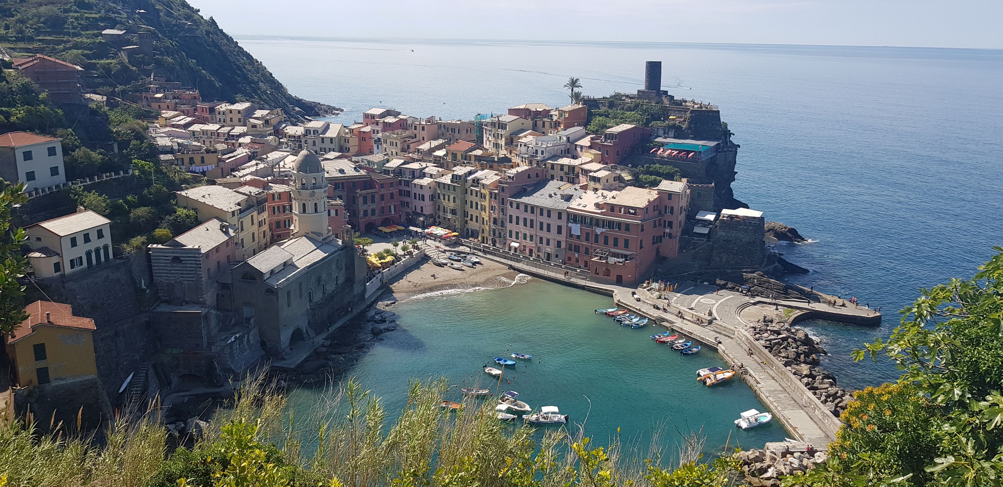 Danach ging es in die Cinque Terre. Dort gibt es eben diese 5 Orte, die malerisch an der Küste liegen. Direkt in die Orte kann man nicht fahren, sondern parkt seinen Wagen einige km davor und wird dann in die jeweiligen Orte gebracht. Vor Ort kann man dann mit dem Zug die Orte besuchen, oder mit dem Schiff, oder man wandert über den wunderschönen Trail. Tipp: nicht in der Hochsaison. Der Trail ist teilweise eng und im Hochsommer sind die Leute wie Ameisen unterwegs. Wir wohnten in Vernazza – der zweite Ort, wenn man von Genua aus kommt. Geschlafen haben wir in einem kleinen entzückenden Appartement direkt im Herzen von Vernazza – das Camaella Luxury Studio. Vormittags wurde gewandert und am Nachmittag machten wir Strandurlaub in Monterosso. Dort aßen wir – weil es uns so gut geschmeckt hatte gleich zweimal – im Ristorante Miky Der einzige Ort in der Cinque Terre, der auch einen Strand hat. Die Cinque Terre ist wirklich eine Reise wert!